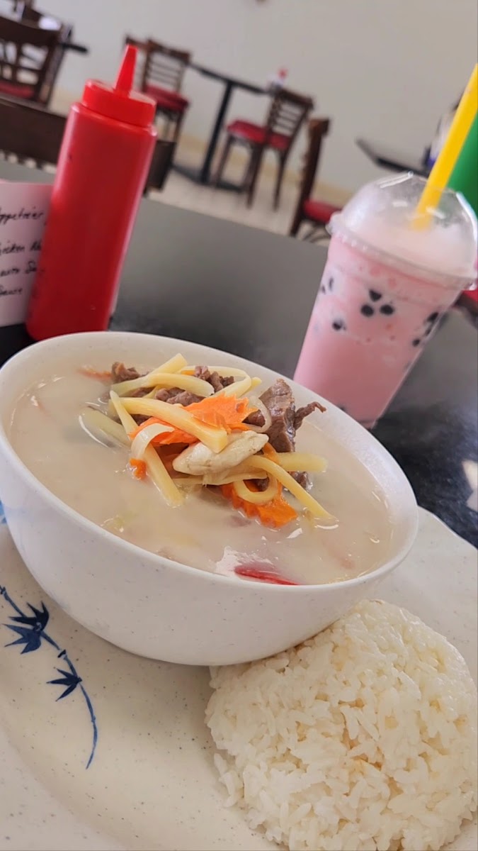 The food is delicious! Fresh tasting and every bite are bursting with flavor. the place is very clean and spacious. Service was friendly and very attentive. Plates are a one serving portion, but I found it to be perfect. The food was worth the price, and I do recommend this place and will definitely be back. Mango Boba was very delicious, too.