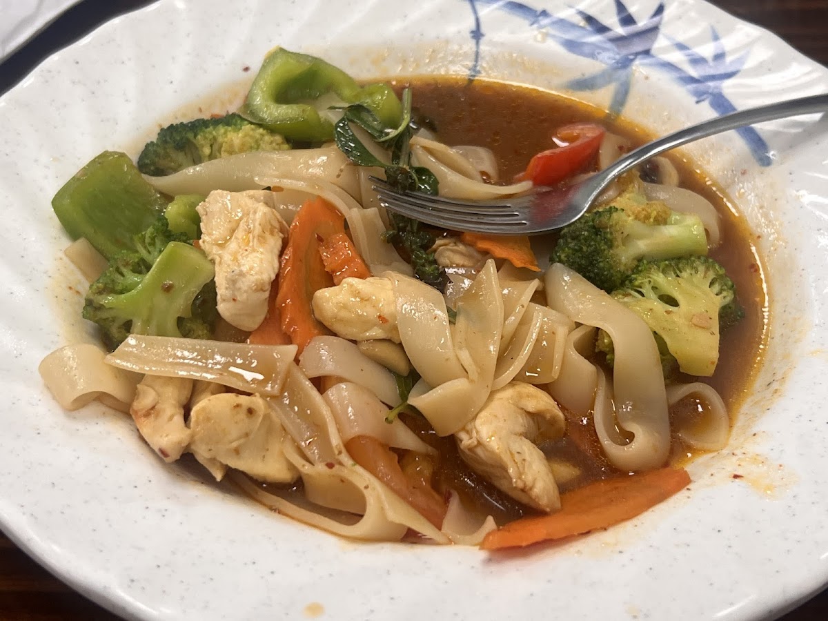 I wanted to start off by saying the overall presentation and cleanliness of this restaurant is fantastic. Especially the bathrooms. They were spotless. The staff were attentive and quick to get us whatever we needed. Water, additional napkins, little cups of chili oil! With an extensive menu supported with pictures it was easy to decide what I wanted. The food was a good portion, perfect considering the prices and tasted so good! The hot level red curry was perfect, the noodle soup was hearty and delicious, and the beef pad Thai was satisfying and had a great flavor. Excellent place for lunch or dinner! 100% recommend you come have Sasi’s Thai!