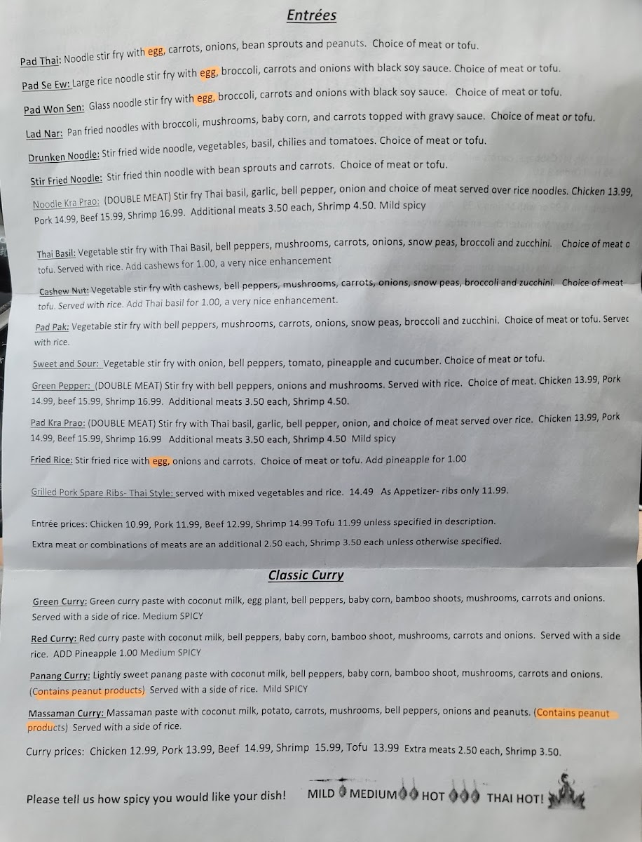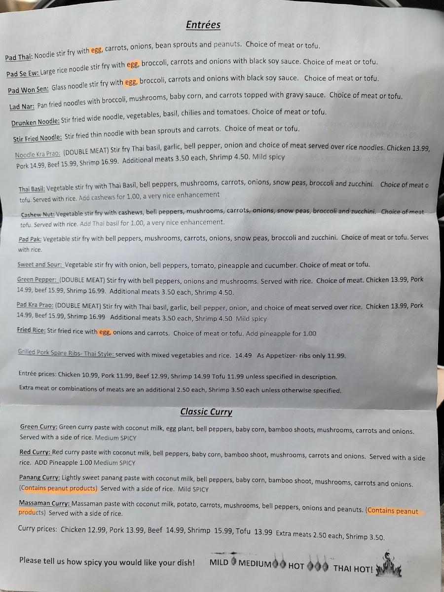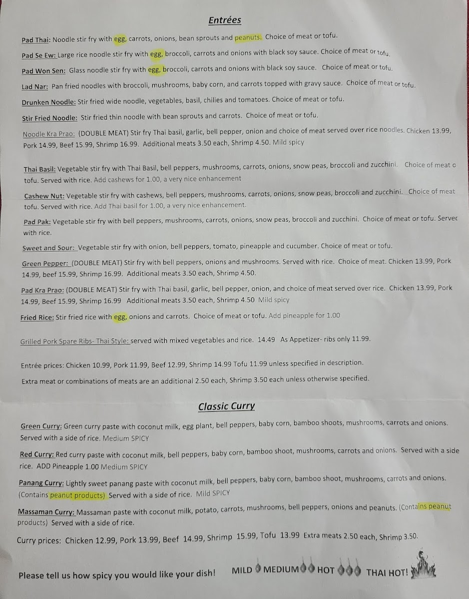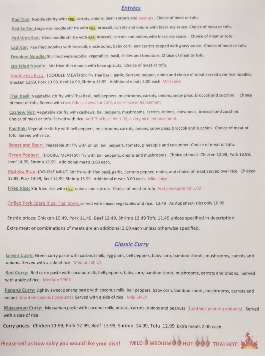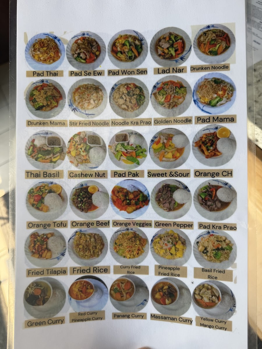 The menu invites diners to explore a variety of tastes, from the subtle warmth of Tom Kha soup to the lively zest of Pad Pak vegetable stir-fry. Whether enjoying a weekday lunch special or a leisurely evening meal, each dish reflects a balance of familiar comfort and authentic Thai ingredients.